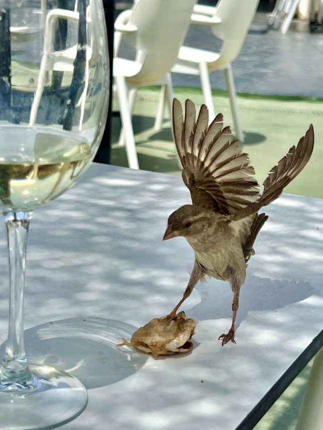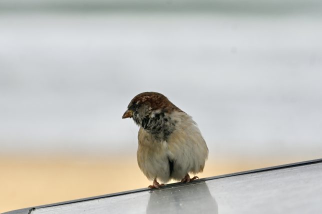 Kann ein zerzauster Spatz ein kleines Vorbild für etwas mehr Bescheidenheit im neuen Jahr sein? Wir treffen ihn im September am französischen Atlantik