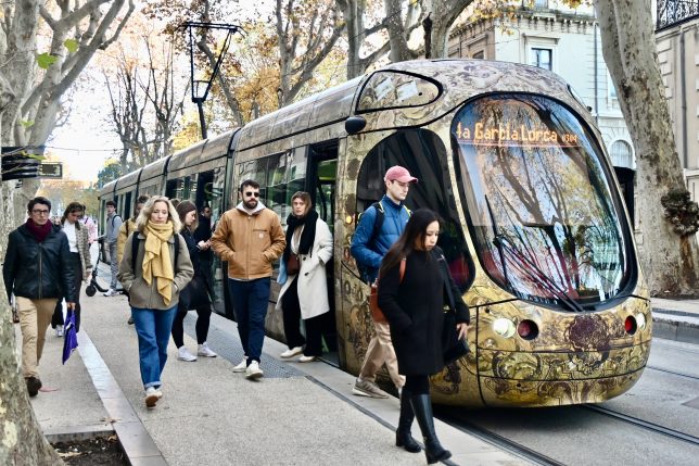 Wir übernachten in Montpellier. Aus anspruchsvoll gestalteten modernen Straßenbahnen strömen die Menschen zur Arbeit. Weihnachten scheint noch keine Rolle zu spielen. Eine schöne Idee: Jede einzelne Bahn hat ihren eigenen Künstler.