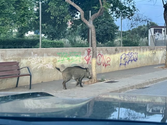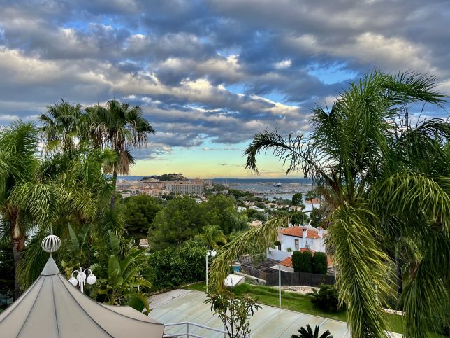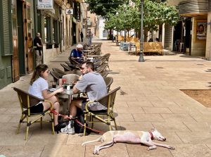 Freude sich wieder mal zu sehen oder sogar gegenseitige Bewunderung? An unserem Spazierweg zu einem Tostada con tomate mit Café con leche im Mena. Es liegt am Ende des Weges vor dem Cabo San Antonio, in gewisser Weise am Ende zumindest dieser unseren kleinen Welt – ähnlich dem Cabo de Finisterre an der Westküste Galiciens, westlich von Santiago de Compostela.