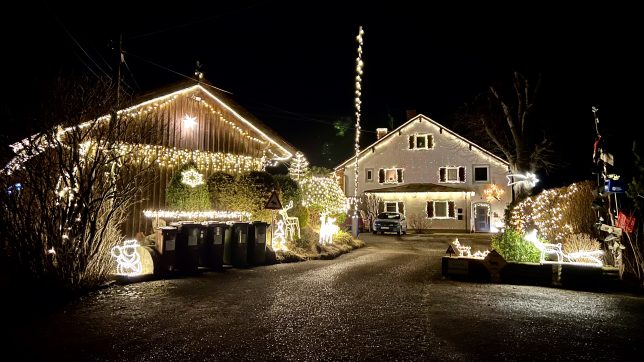 Dann kurz vor dem Ziel: Wie jedes Jahr der unermüdliche wunderbare Weihnachtsschmuck der Holzhausener Familie Manhart Weihnachtliche Nachbarschaftsbeleuchtungen (neighborhood lights) sind, so lese ich gerade in der vertrauenswürdigen Washington Post, nach einer Umfrage in den Vereinigten Staaten der drittliebste Weihnachtsbrauch nach Gutsle und Weihnachtsbäumen