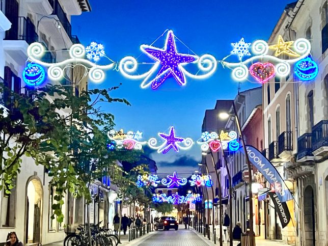 Spätestens zwei Wochen vor Weihnachten sind Dénias Straßen geschmückt, jedes Jahr anders (Foto aus 2022)