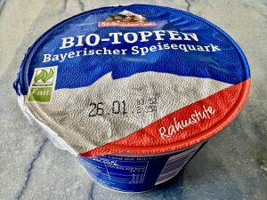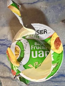 … im Gegensatz zur Verpackung des Fruchtquarks derselben Molkerei Diese reagiert auf einen freundlichen Info-Hinweis nebst diesem Foto per Email überhaupt nicht. Haben wir denn in dieser Branche noch immer die alten Zeiten als HDM mit Marketing, PR, Obstgarten, Fruchtzwerge und Co mehr Professionalität versuchte? Gewissensfrage: Jetzt auch den Almbutter (schwäbisch) nicht mehr von Andechser kaufen? Beim Quark sind wir schon auf den Berchtesgadener Bio-Topfen mit ebenfalls köstlichem Inhalt unter einer zuverlässigen Deckelfolie umgestiegen.